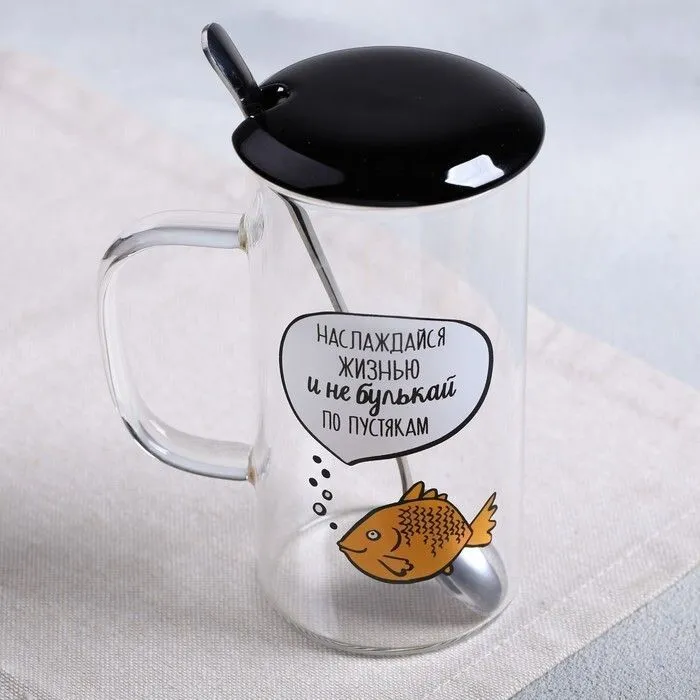 Кружка "Наслаждайся жизнью", с крышкой и ложкой, 300 мл 4489756