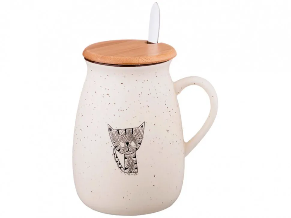 Кружка 400 мл "Зая", с керамической крышкой и ложкой, рисунок МИКС