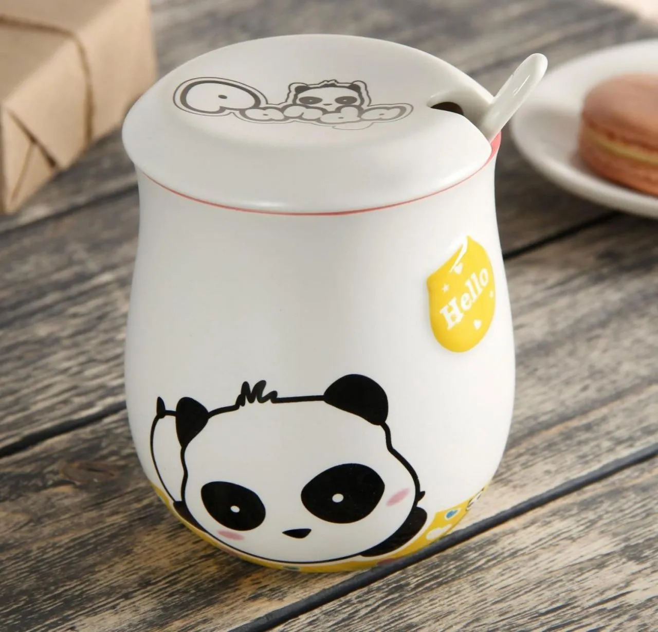 Кружка 400 мл "Привет, панда", с крышкой и ложкой, МИКС
