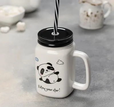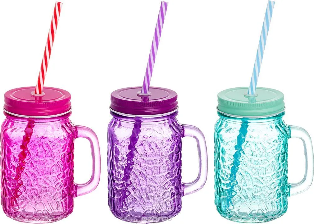 Кружка 450 мл "Фламинго", с металлической крышкой и трубочкой, МИКС