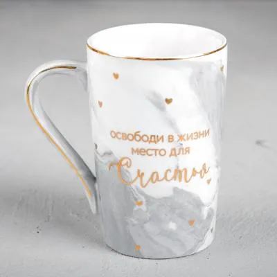 Кружка Love с золотым принтом в двух цветах, ручка-кольцо 220 мл G060-2
