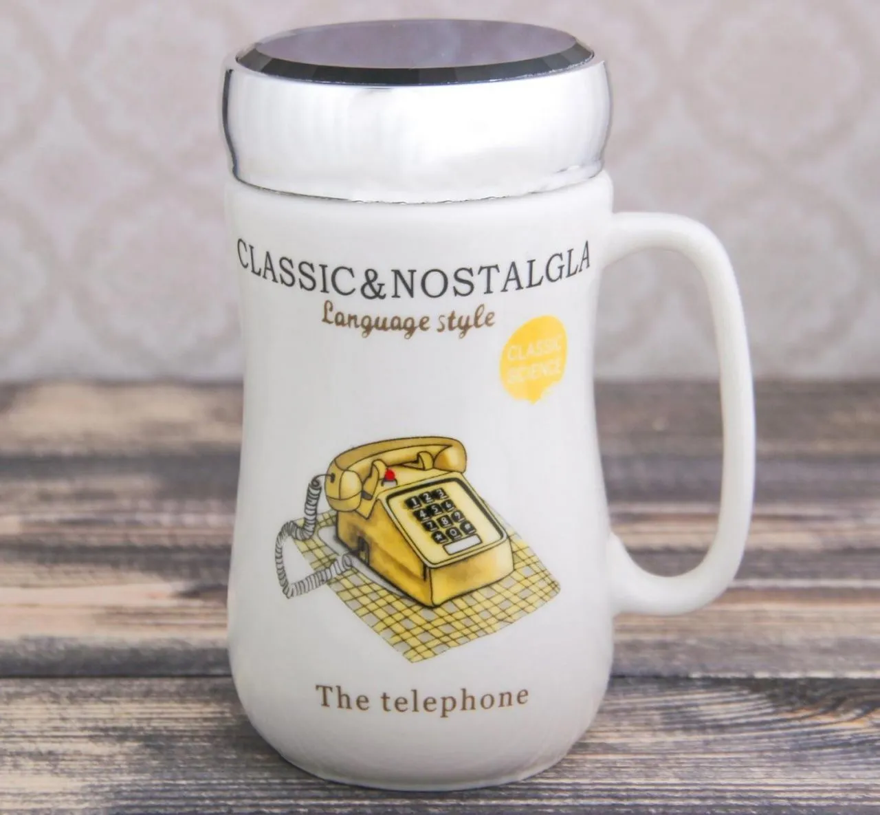 Кружка с крышкой-зеркалом 400 мл "Ностальгия" 12х9х13,3 см, цвета МИКС