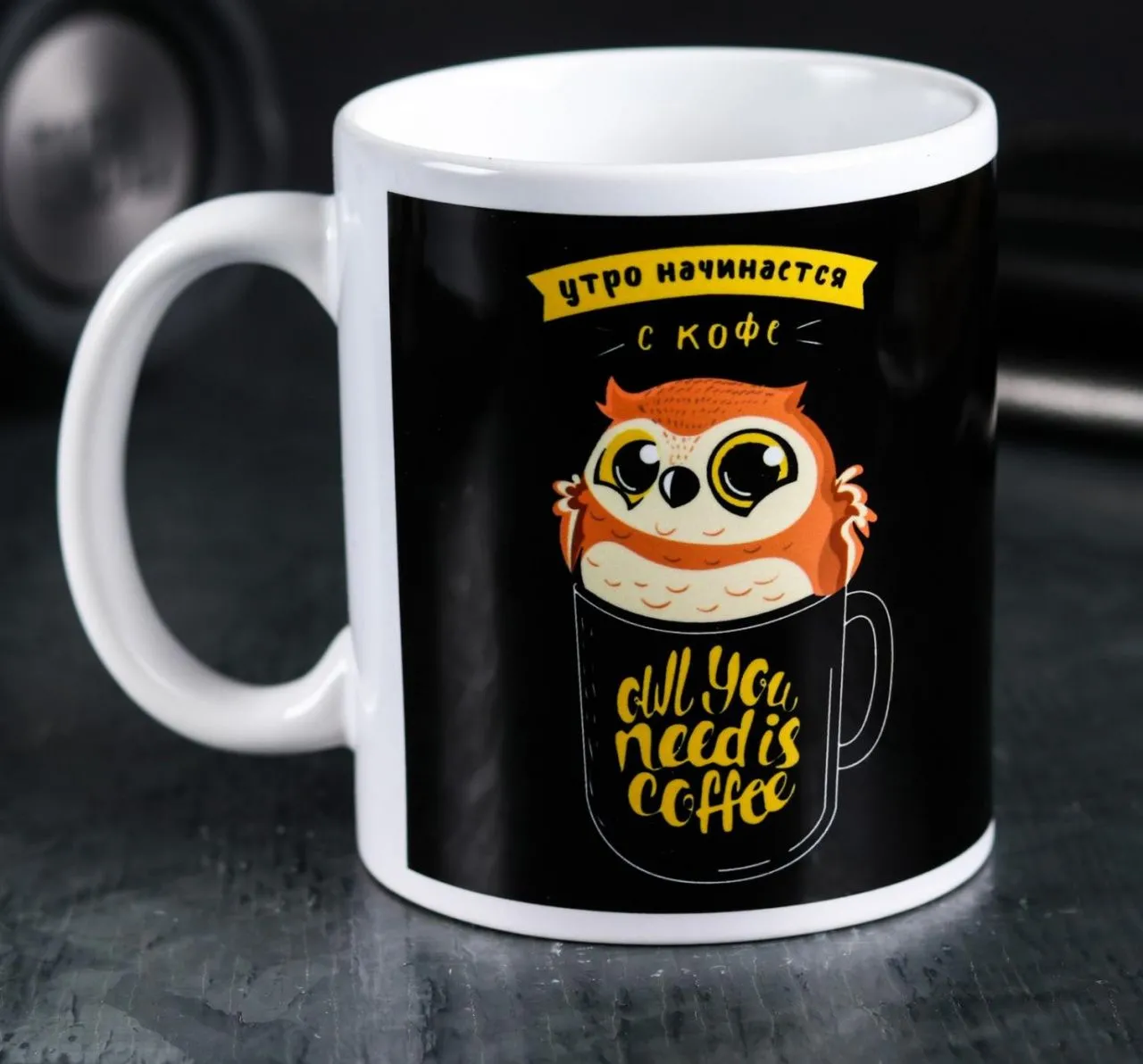 Кружка с сублимацией "Сова. Утро начинается с кофе" 4289872