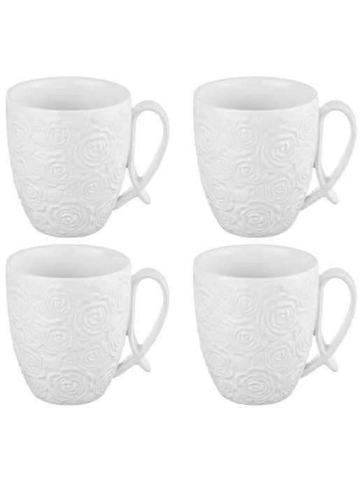 Набор кружек 4 предмета "Розы" 20*20*32 см, 300 мл 11*8*9,5 см - каждая, на деревянной подставке