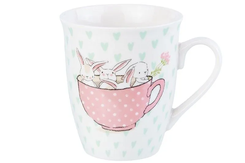 Кружка "Зайки в розовой чашке на белом" 350 мл 11,5*8,5*10,5 см, NEW BONE CHINA