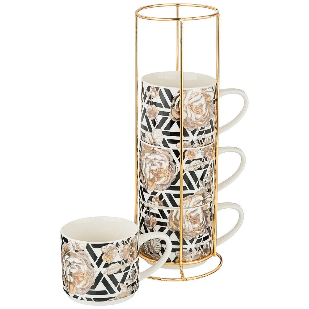 НАБОР КРУЖЕК "GOLDEN ROSE" 4 ШТ. НА МЕТАЛЛ.ПОДСТАВКЕ 360МЛ, ГЕОМЕТРИЯ 133-323