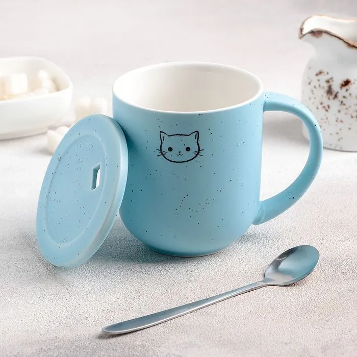 Кружка с керамической крышкой и ложкой "Малыши" 350 мл, 13x9x10,5 см, цвета и рис МИКС 4486636