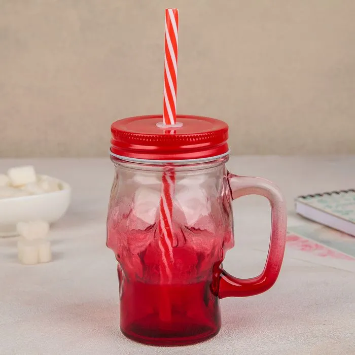 Банка с ручкой, крышкой и трубочкой "Череп" 400 мл, 11х8,5х13 см, цвета МИКС 3600749