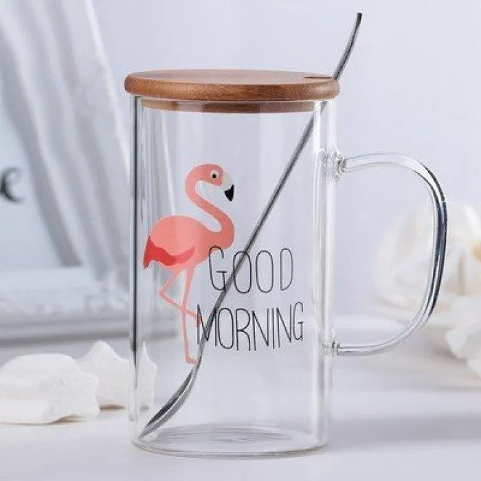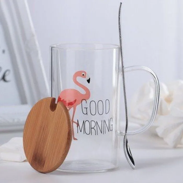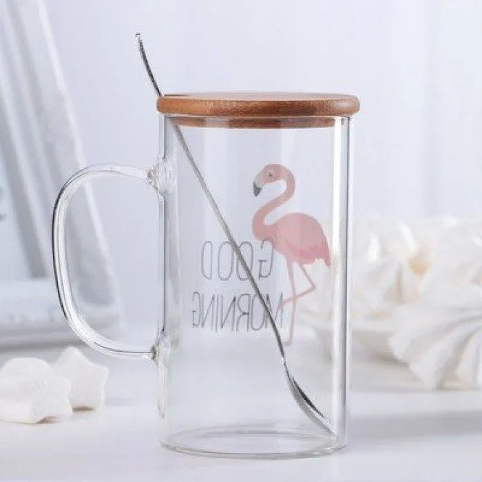 Кружка с деревянной крышкой и ложкой "Добро утро" рисунок МИКС 3922940