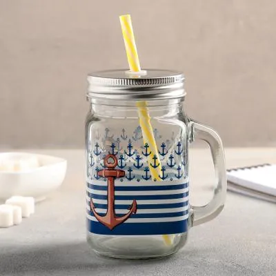 Банка с ручкой, крышкой и трубочкой "Счастливый день" 450 мл, цвет МИКС 2603819