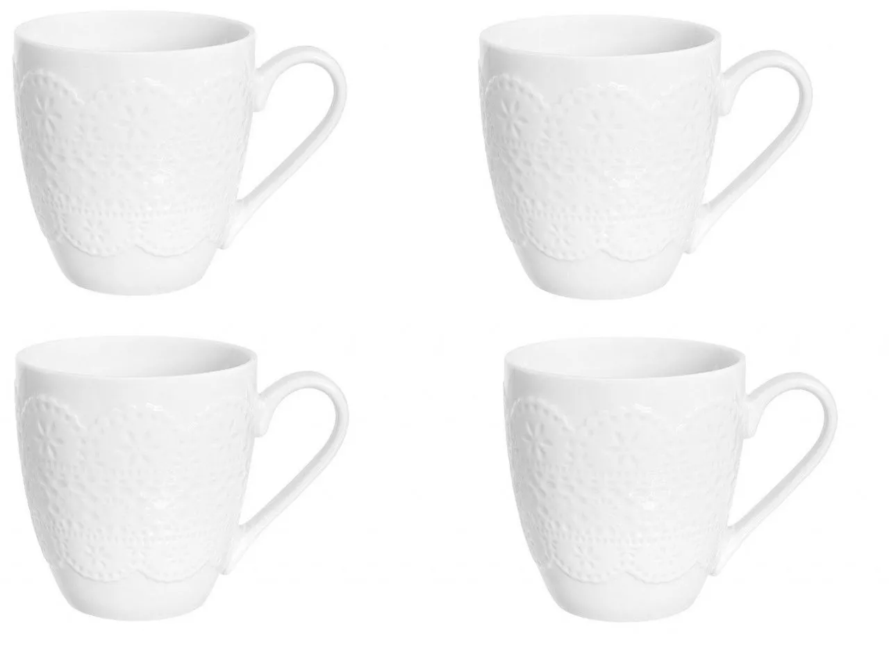 Набор кружек "Кружево" 4 предмета, 12*9*9,5 см 350 мл - каждая, на деревянной подставке с ручкой, 20*20*31 см