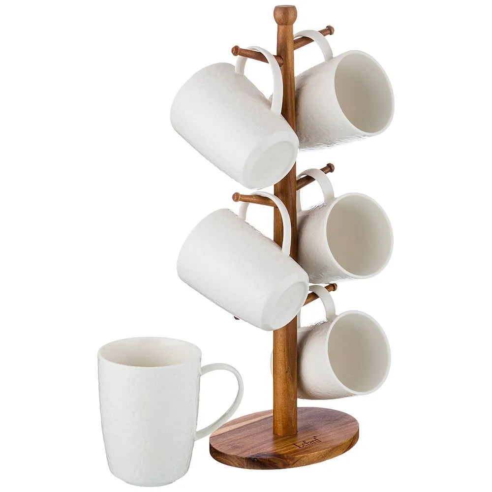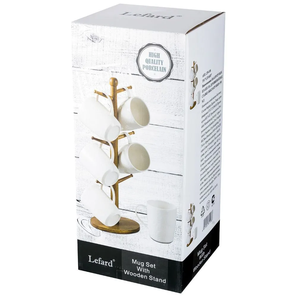НАБОР КРУЖЕК ИЗ 6 ШТ. НА ДЕРЕВЯННОЙ ПОДСТАВКЕ ОБЪЕМ КРУЖКИ=350 МЛ 235-108