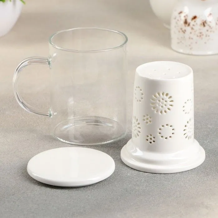Кружка с керамическим ситом и крышкой "Нежность" 350 мл, цвет белый 4708389