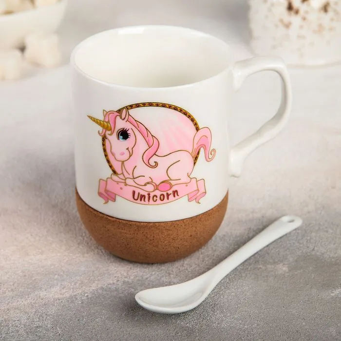 Кружка с ложкой "Единорог в мечтах" 300 мл, рисунок МИКС 4711379