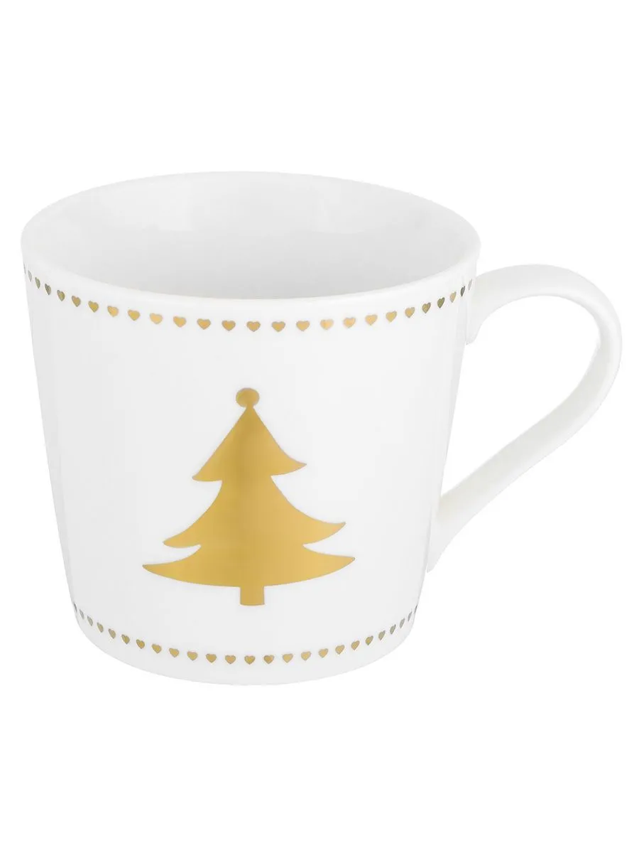 Кружка "Золотая елка" 13*9,7*9 см 380 мл с золотом, NEW BONE CHINA