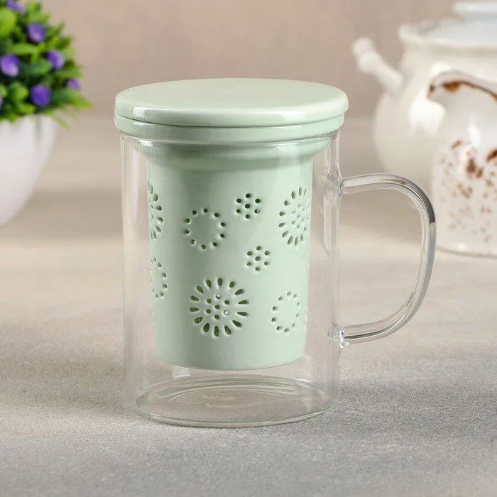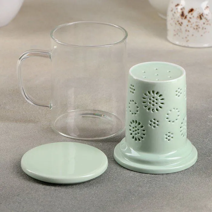 Кружка с керамическим ситом и крышкой "Нежность" 350 мл, цвет мятный 4708390