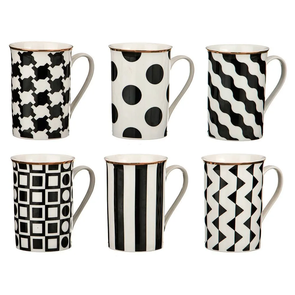 НАБОР КРУЖЕК ИЗ 6 ШТ."ЧЕРНО-БЕЛОЕ" 300 МЛ. КОЛЛЕКЦИЯ "VOGUE" (КОР=6НАБ.)