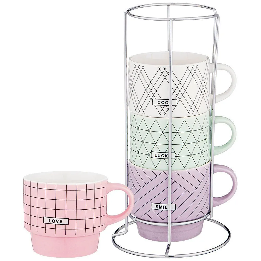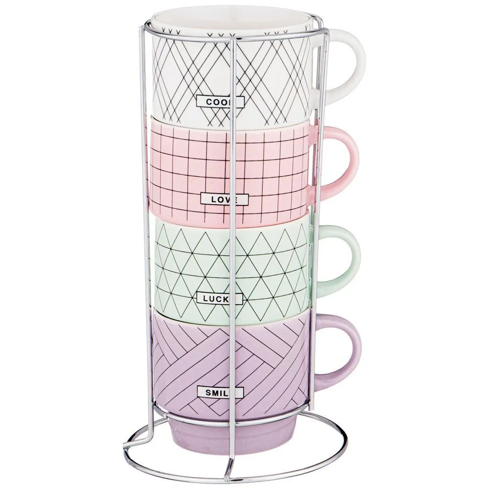 Набор из 4 кружек на металлической подставке lefard "Break time" 210 мл оттенки 756-263