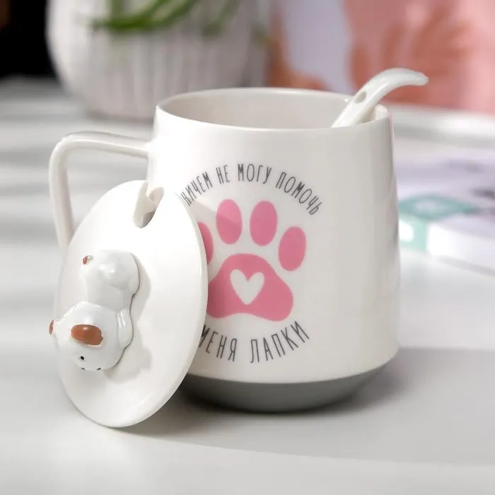 Кружка "У меня лапки", с крышкой и ложкой, 350 мл 4621647