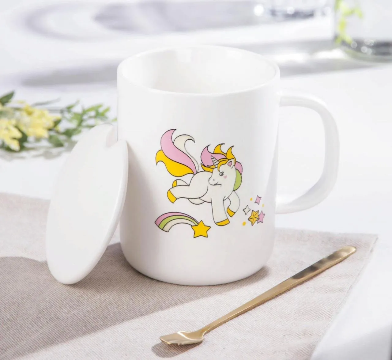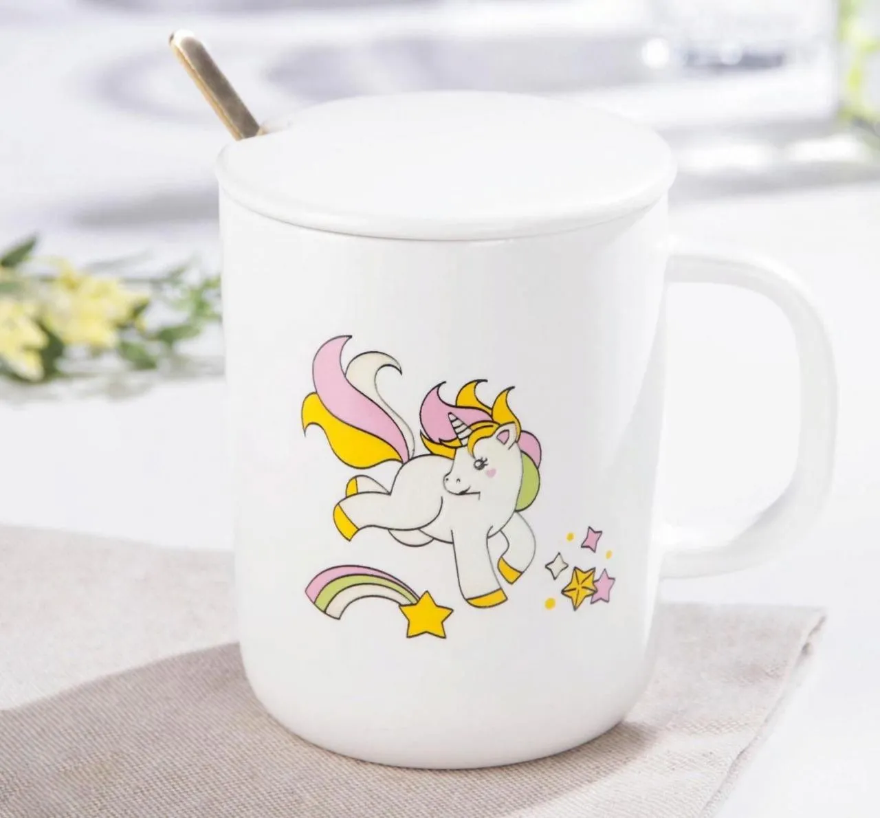 Кружка с керамической крышкой и ложкой "Единорог" 300 мл, 11х8,5х10,5 см, рисунок МИКС 5390748