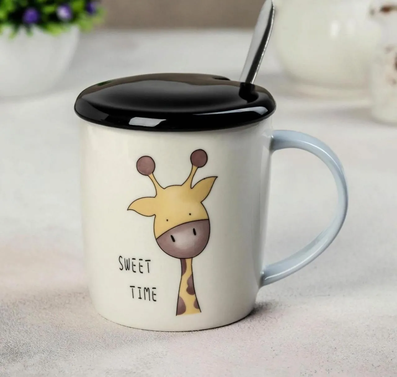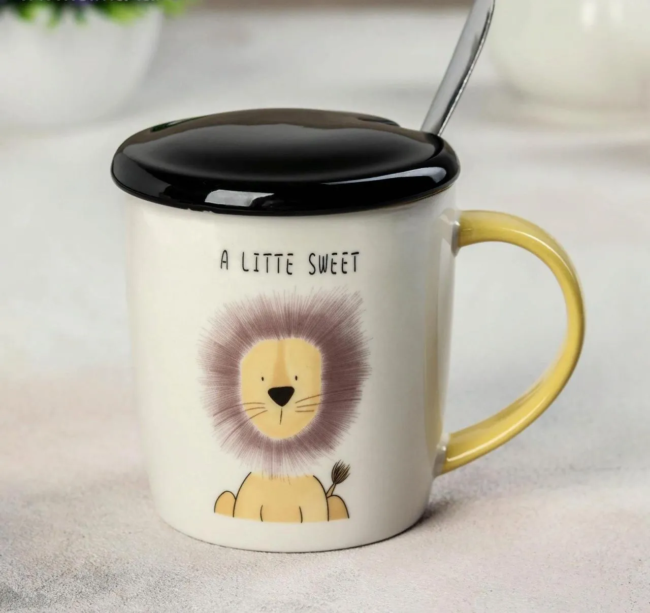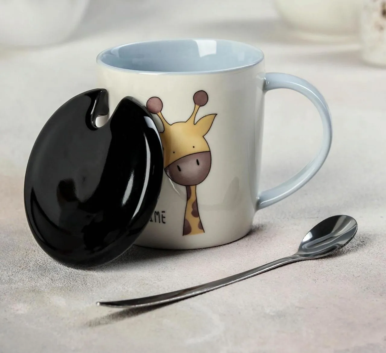 Кружка с керамической крышкой и ложкой "Заповедник" 320 мл, 12х8х10,5 см, рисунок МИКС 4491296