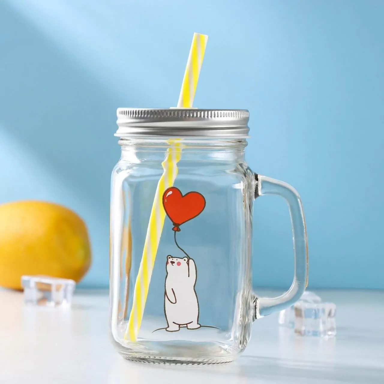 Банка для смузи «Медведь», 450 мл, с ручкой, крышкой и трубочкой