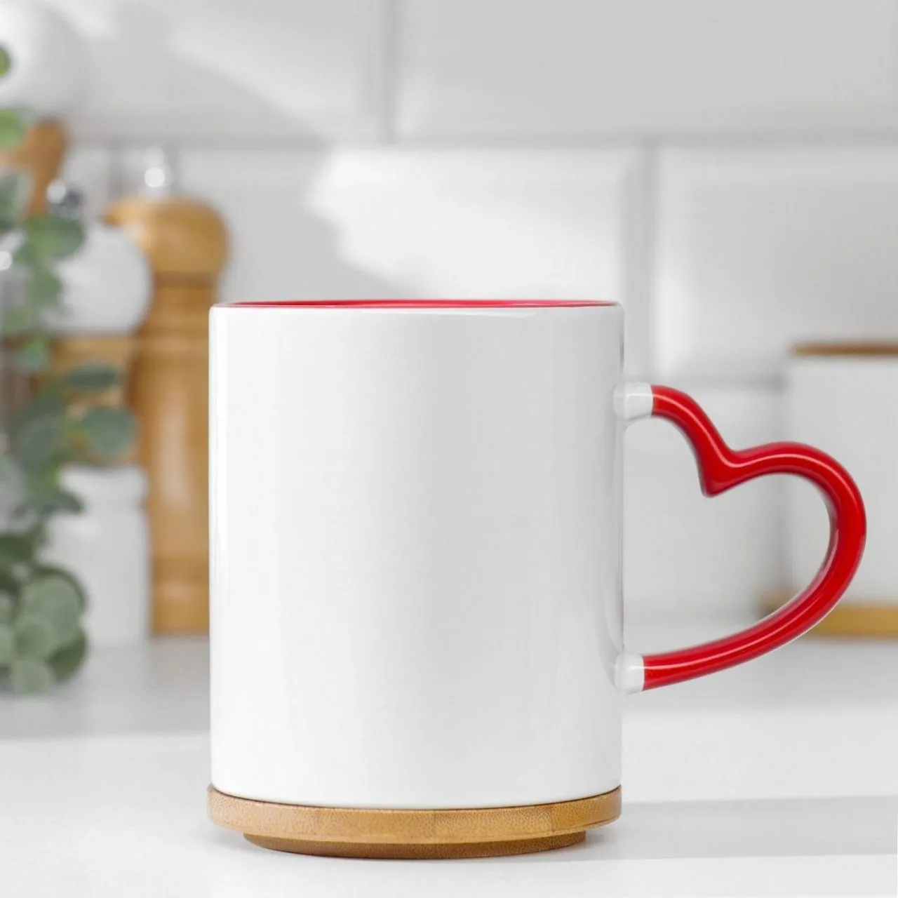 #Кружка под сублимацию с фигурной ручкой "Сердце" красная внутри и ручка стандарт 330мл 6712771