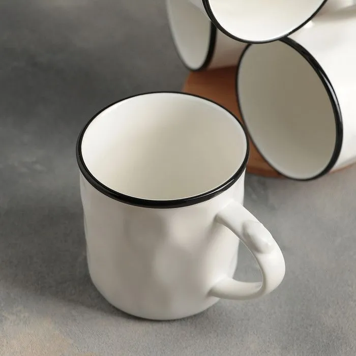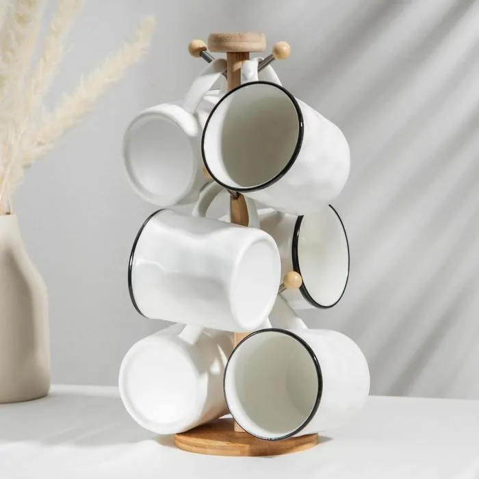 Набор кружек на деревянной подставке 6 шт "Эстет" 350 мл, 12,5x8,5x9,5 см 3803793