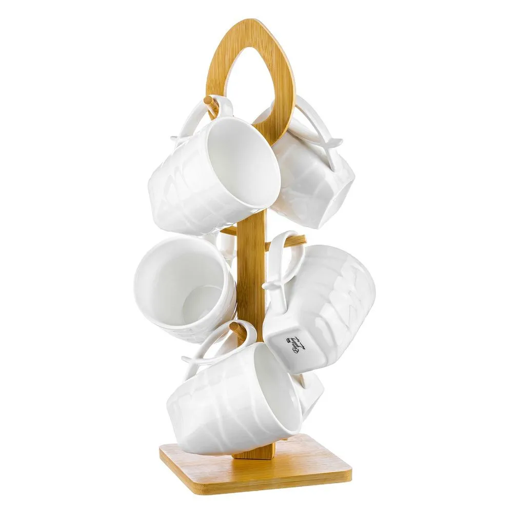Набор кружек "Айсберг волны" с ровными краями - 6 шт, 11*8,3*9,5 см, 300 мл - каждая, на деревянной подставке с ручкой