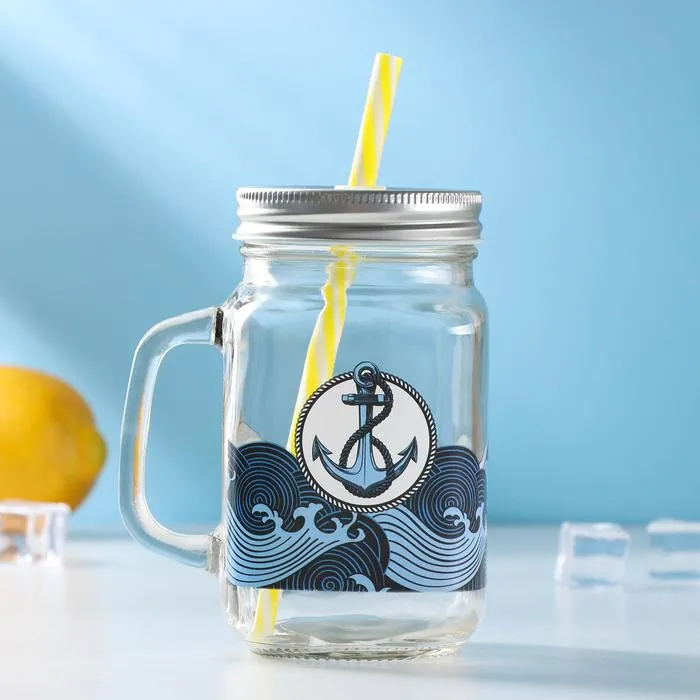 Банка с ручкой, крышкой и трубочкой "Якорь" 450 мл, 10х7,5х13 см 5299827