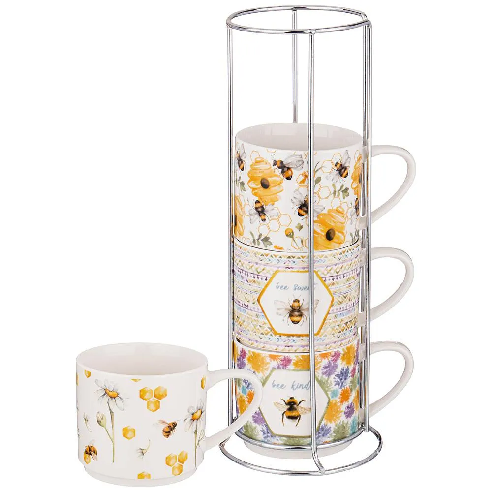 НАБОР КРУЖЕК НА МЕТАЛЛ.ПОДСТАВКЕ LEFARD "HONEY BEE" 4 ШТ. 360МЛ (КОР=8НАБ.)