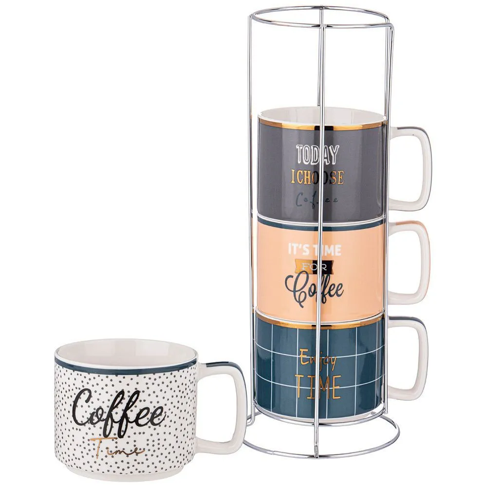 НАБОР КРУЖЕК LEFARD BREAK TIME НА МЕТ. СТОЙКЕ, 330МЛ, 4 ШТ 260-676