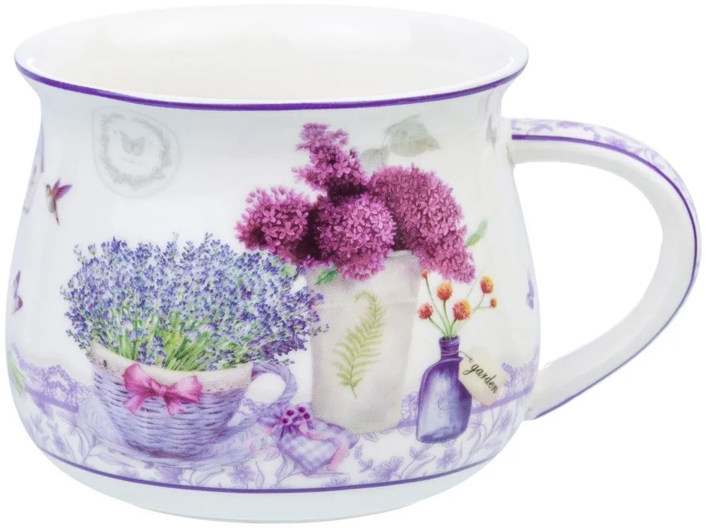 Кружка "Лаванда", 11*8,5*7 см 250 мл, форма бочонок, NEW BONE CHINA