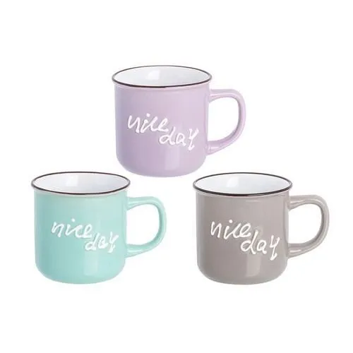 Набор 3 кружек "Nice day" 350 мл 12*8,5*8,5 см каждая, бирюзовая + капучино + сиреневая, керамика