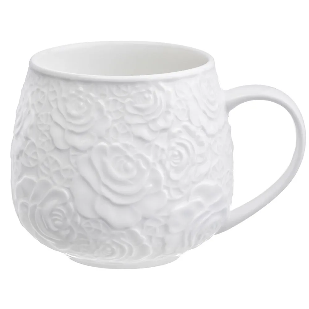 Кружка "Белые розы" 12,5*9,5*8,5 см, 400 мл, форма бочонок, фарфор
