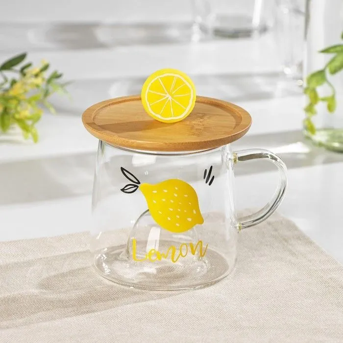 Кружка с деревянной крышкой "Лимончик" 350 мл, 12x10,5x9 см 4624652