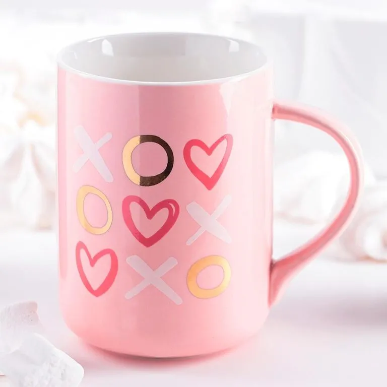 Кружка белая с черным принтом и красным сердечком 280 мл T011-2