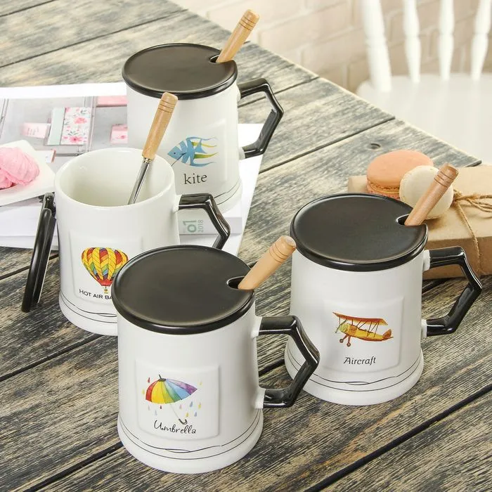 #Кружка 450 мл керамическая "Мишка" с крышкой и ложкой