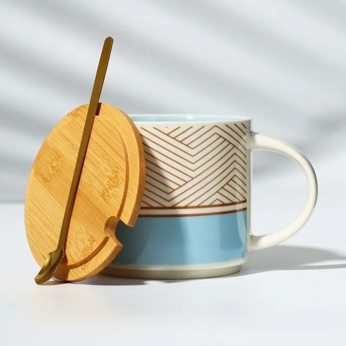 Кружка с крышкой и ложкой "Геометрия", 470 мл 9687164