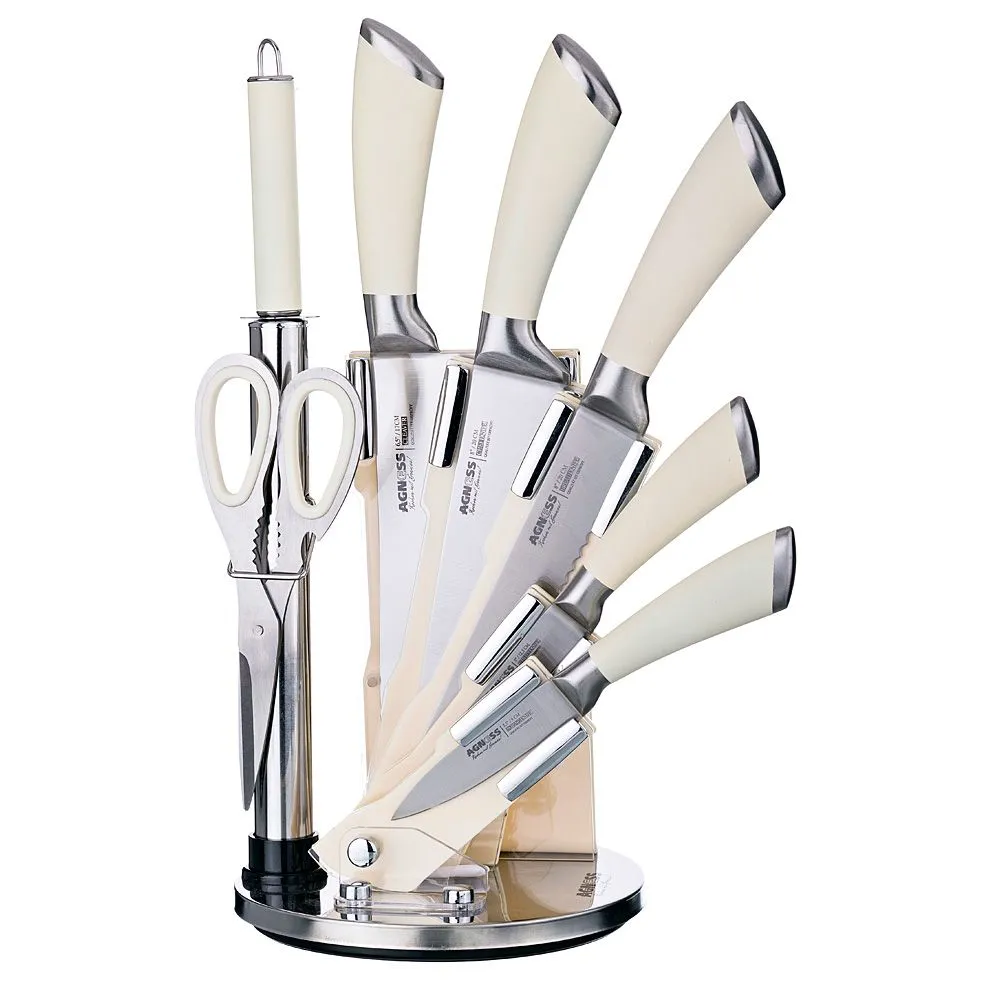 НАБОР НОЖЕЙ AGNESS НЖС С СИЛИКОНОВЫМИ РУЧКАМИ НА ПЛАСТИК. ПОДСТАВКЕ 8 ПР 911-502