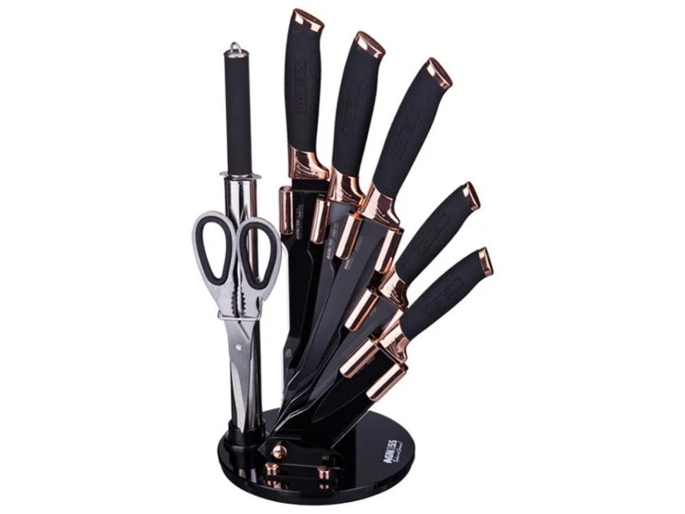 НАБОР НОЖЕЙ AGNESS НЖС С СИЛИКОНОВЫМИ РУЧКАМИ НА ПЛАСТИК. ПОДСТАВКЕ 8 ПР 911-601