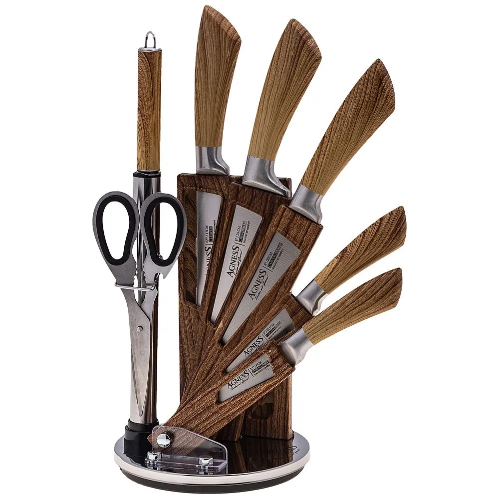 Набор Ножей Agness С Ножницами И Мусатом На Пластиковой Подставке, 8 Предметов 911-640