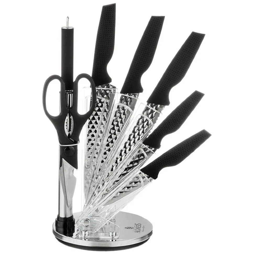 НАБОР НОЖЕЙ AGNESS С НОЖНИЦАМИ И МУСАТОМ НА ПЛАСТИКОВОЙ ПОДСТАВКЕ, 8 ПРЕДМЕТОВ 911-671