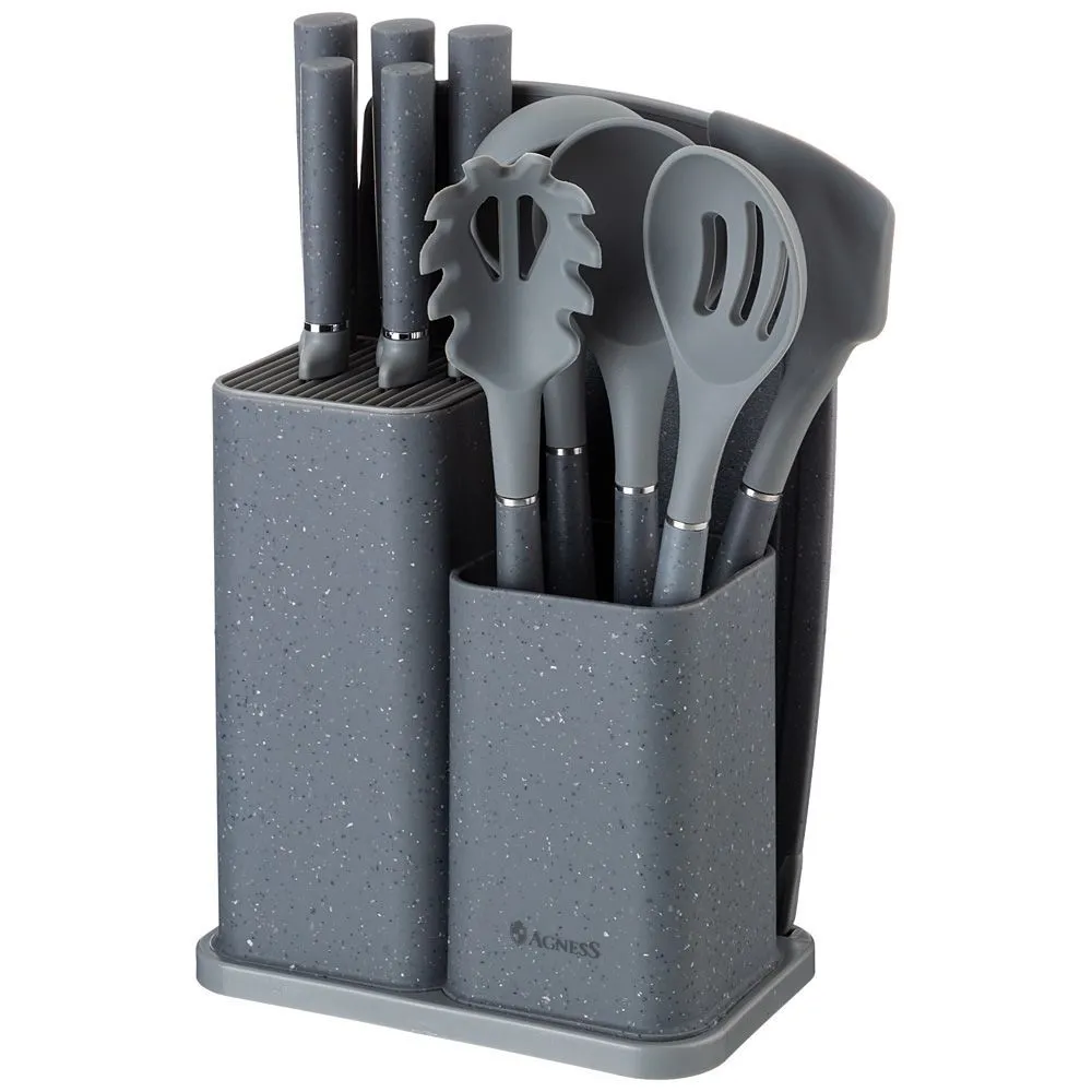 Набор из 12пр: 5 ножей, доска, подставка, половник, ложка, лопатка, шумовка, ложка цвет agne 671-201
