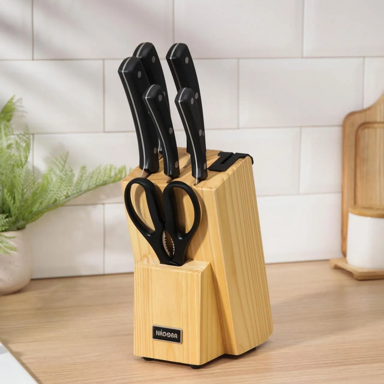 Набор из 5 кухонных ножей и блока для ножей с ножеточкой, NADOBA, серия HELGA