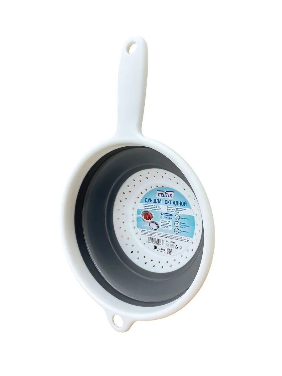 CELLTIX Дуршлаг складной, 37х23х9см, силикон, бело-серый, ES-CL-portable, E1M