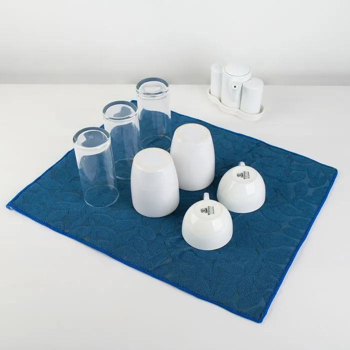 Коврик для сушки посуды "Папоротник" 38х50 см, цвет синий 4604261