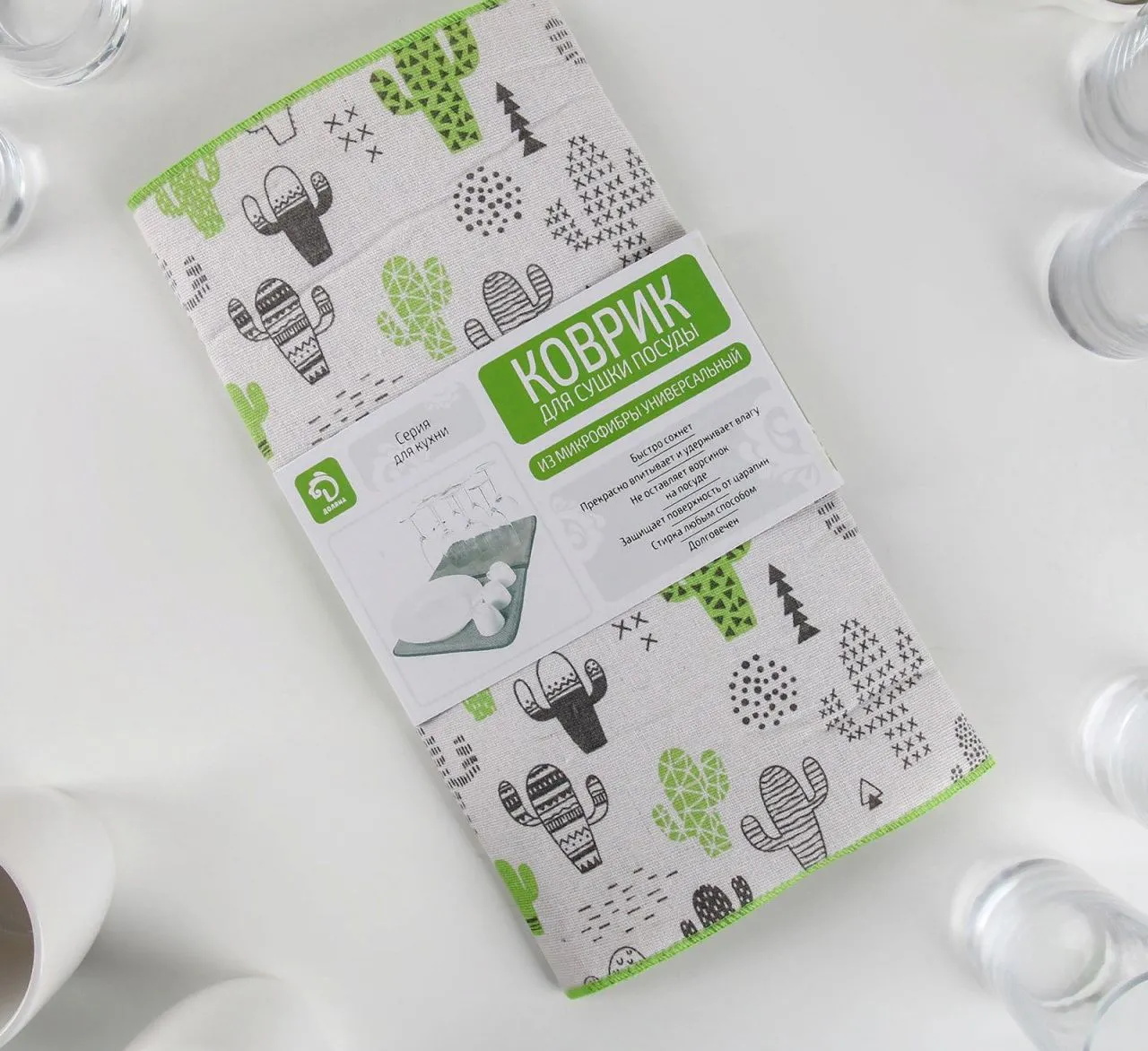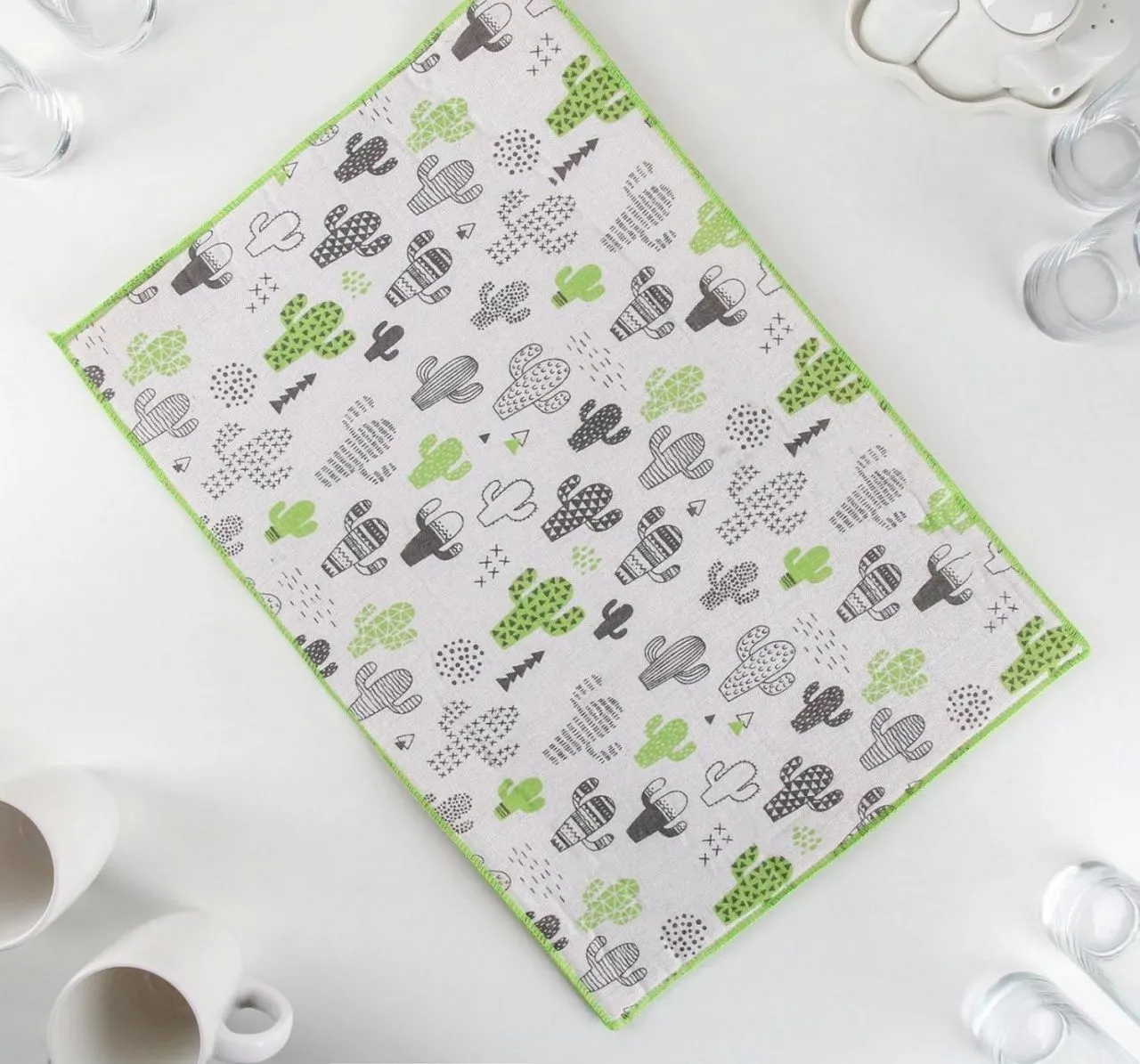Салфетка для сушки посуды, удаления грязи и пыли "Кактусы" 34х50 см (лён) 4466355