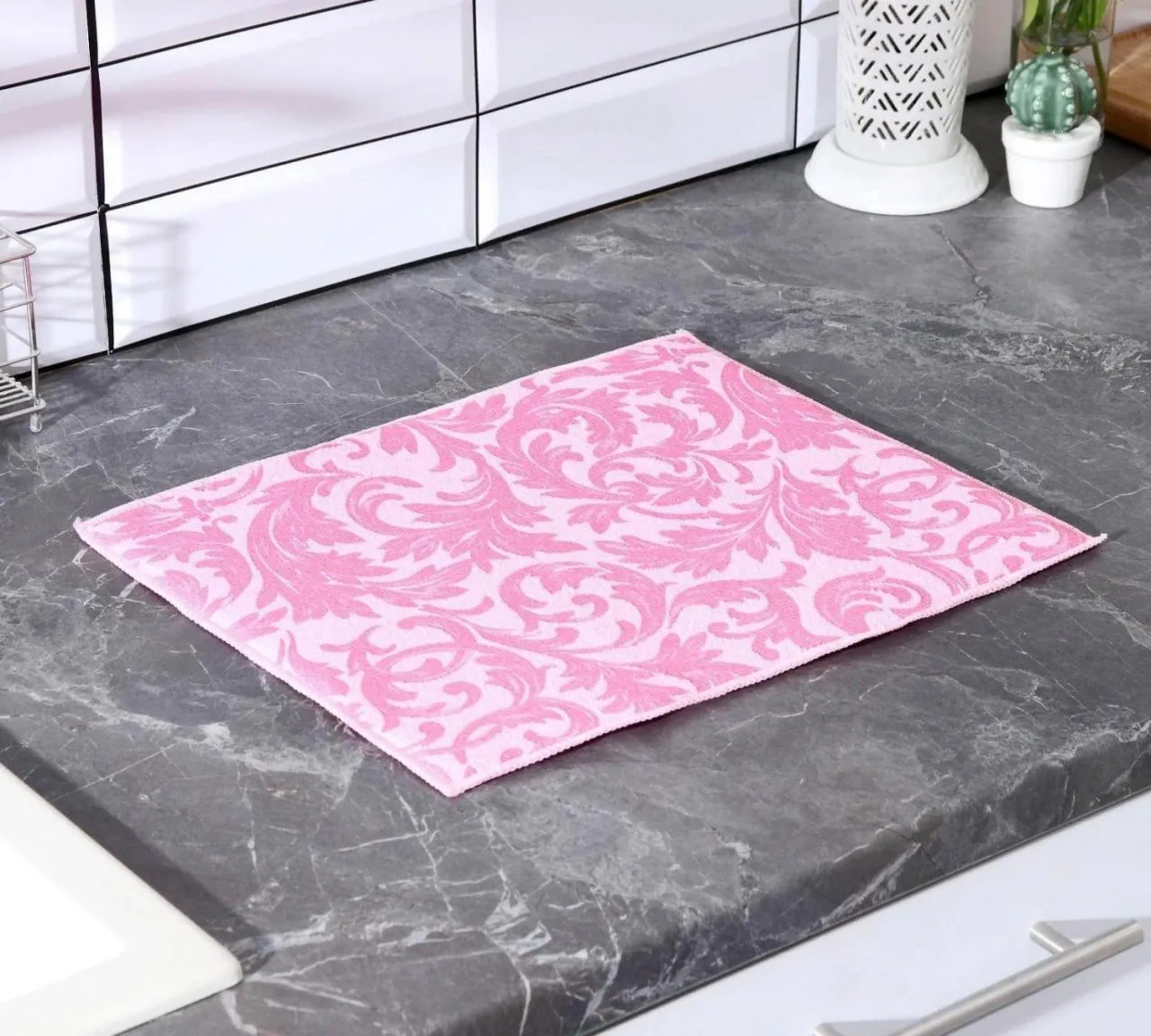 Салфетка для сушки посуды, удаления грязи и пыли 30х40 см "Флёр", цвет розовый 5231964