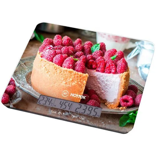ВЕСЫ КУХОННЫЕ HOTTEK HT-962-037 Чизкейк, макс вес - 7 кг, отображение температуры помещения и времени